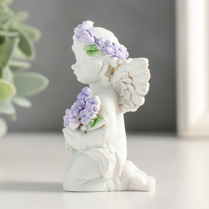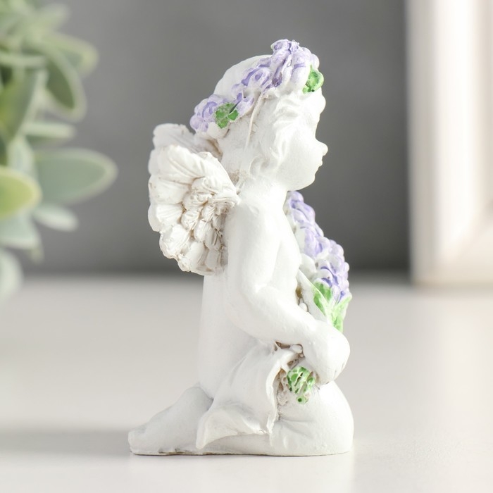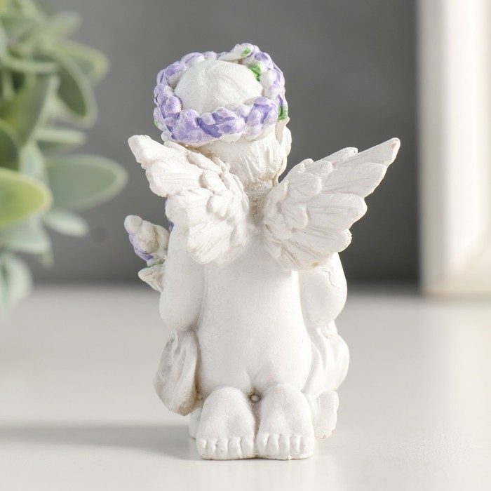 Сувенир полистоун "Белоснежный ангелок с лавандой, в венке из лаванды" МИКС 7,2х4,8х4 см