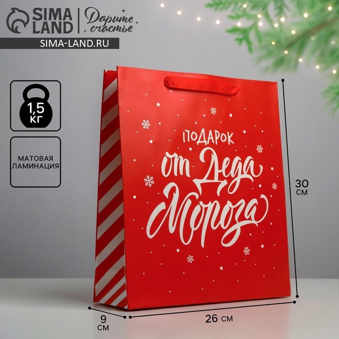 Пакет подарочный новогодний ламинированный «Подарок от Деда Мороза», M 26 х 30 х 9 см