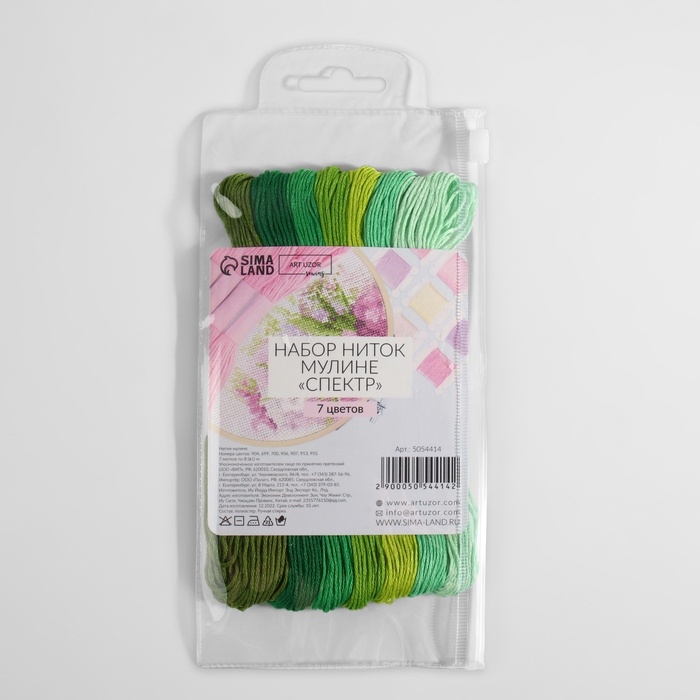 Набор ниток мулине, 8 ± 1 м, 7 шт, цвет зелёный спектр