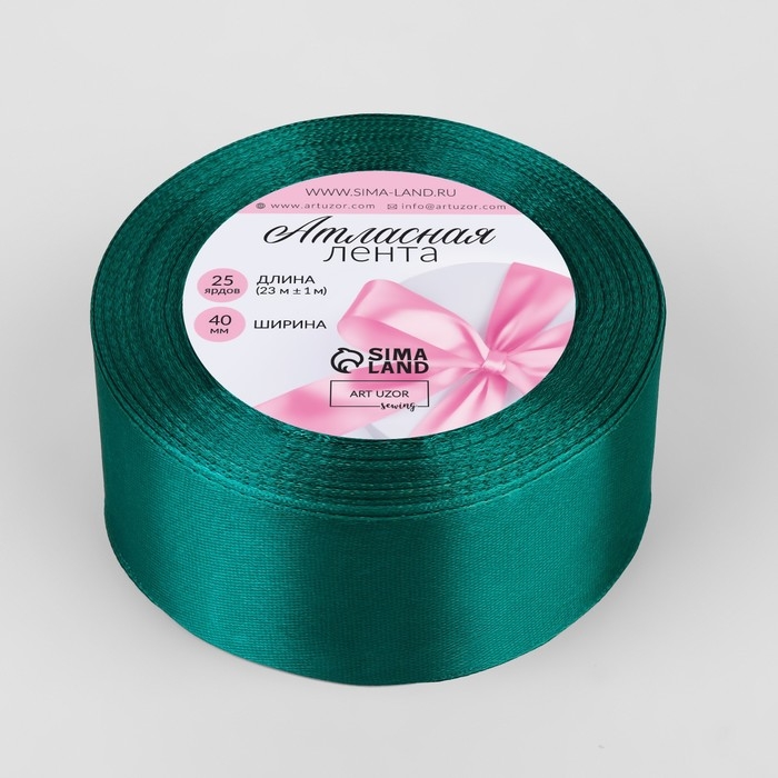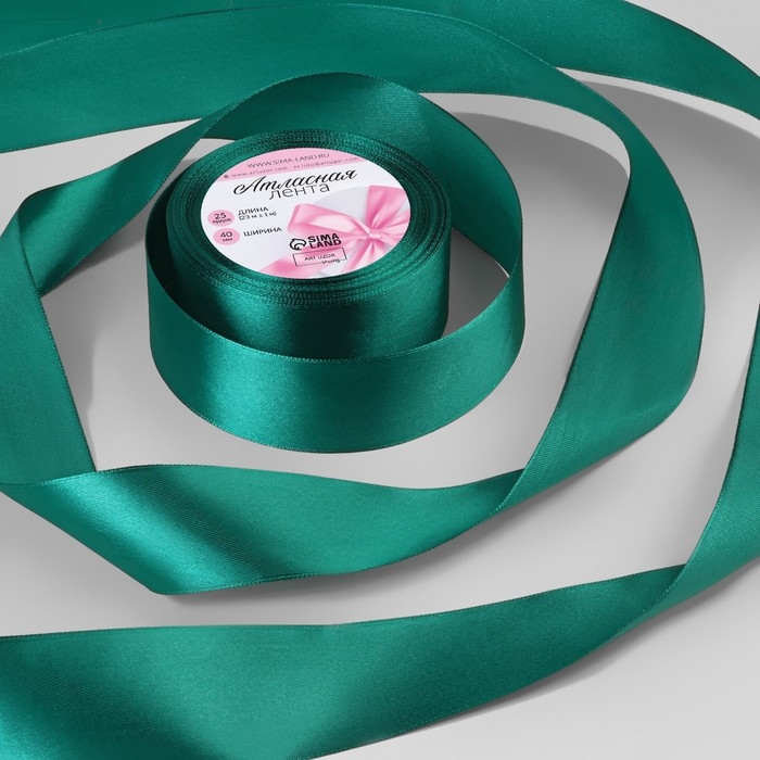 Лента атласная, 40 мм × 23 ± 1 м, цвет изумрудный №126
