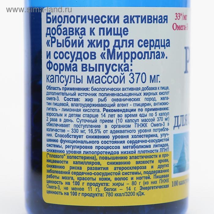 Рыбий жир Mirrolla для сердца и сосудов, 100 капсул