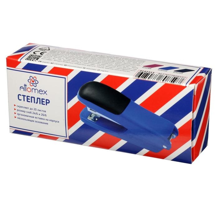Степлер "Attomex" 24/6&26/6 (мощность 20 листов, глубина скрепления 50 мм) пластиковый, 2 вида скрепления, антискользящее основание, в картонной коробке, черный.