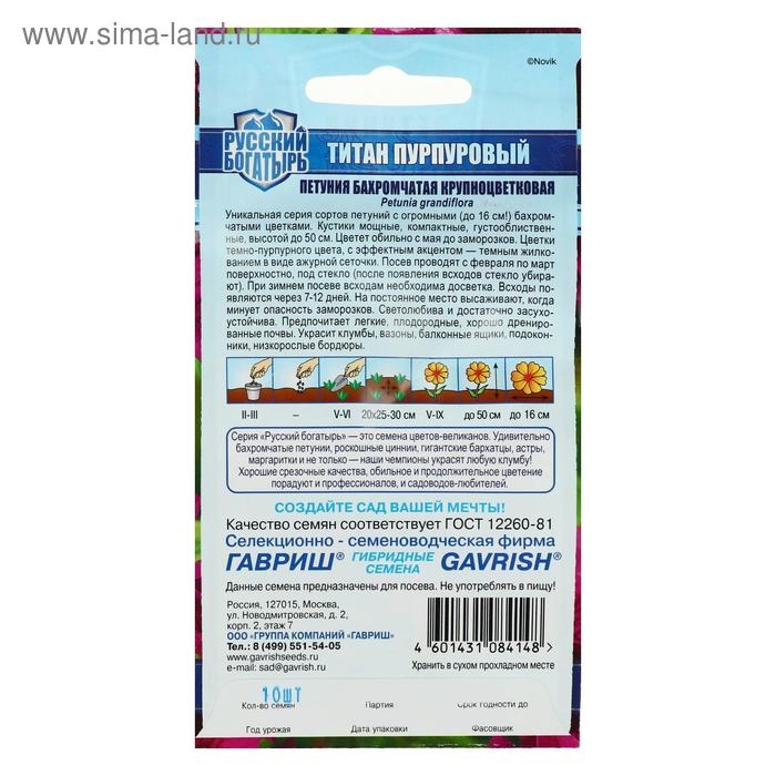 Семена цветов Петуния "Титан пурпуровый", ц/п, бахромчатый, серия Русский Богатырь, 7 шт
