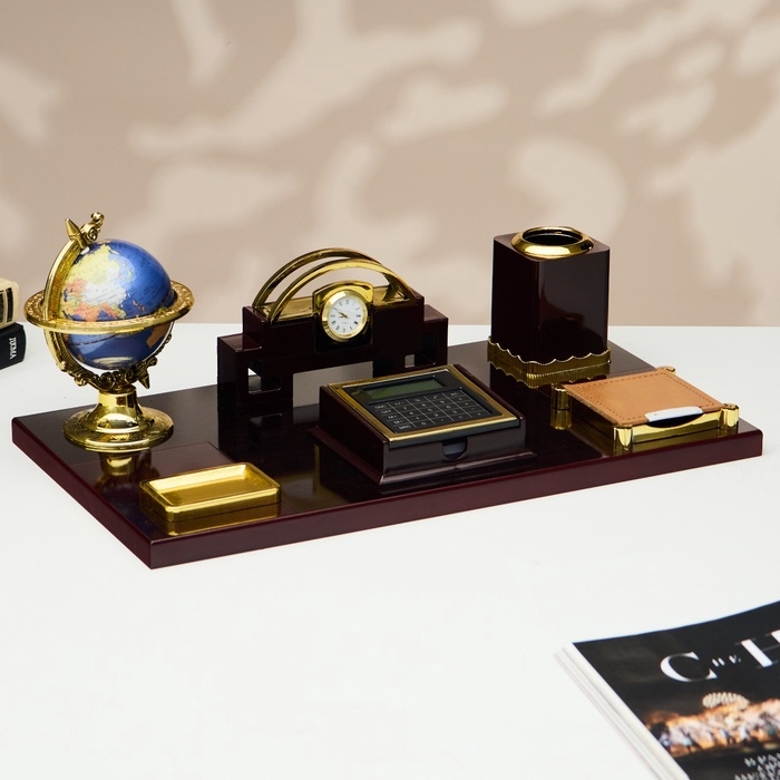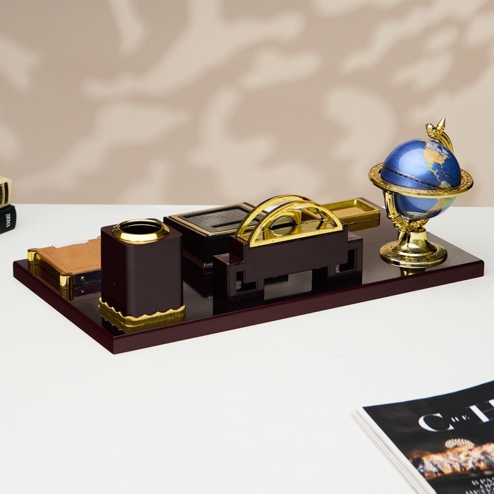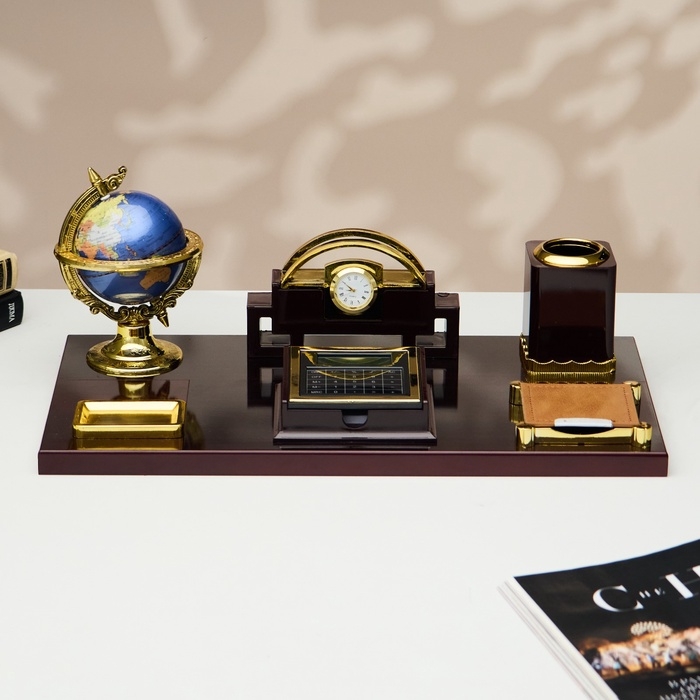Набор настольный 7в1(блок д/бум,подст.д/печати,карандашница, кальк, глобус, визитн с часами)
