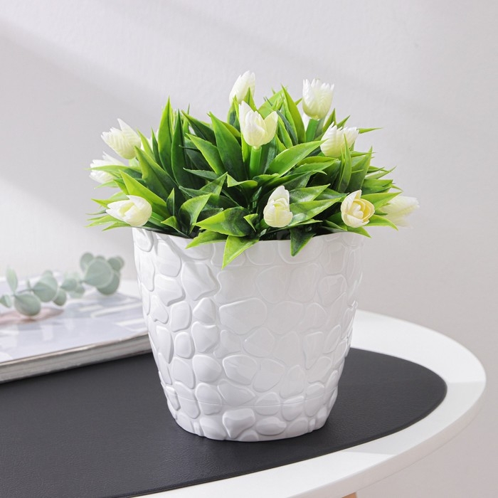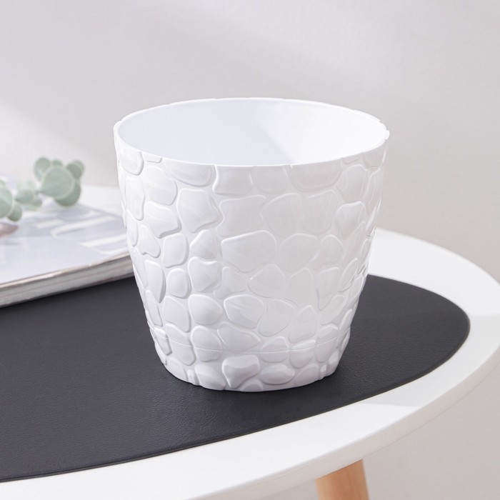 Горшок для цветов с поддоном «Камешки», 1,6 л, пластик, белый