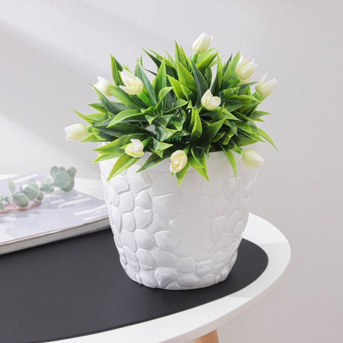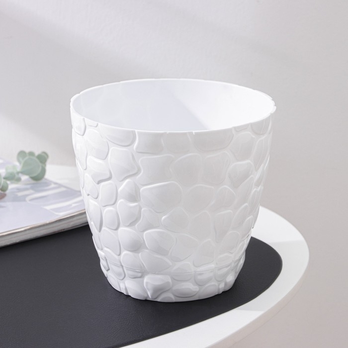 Горшок для цветов с поддоном «Камешки», 3 л, пластик, белый