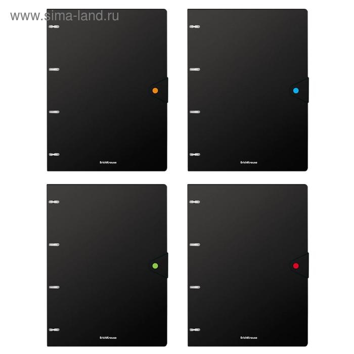 Тетрадь А4 на кольцах, 80 листов в клетку, ErichKrause Accent, пластиковая обложка, на кнопке, блок офсет 100% белизна, МИКС