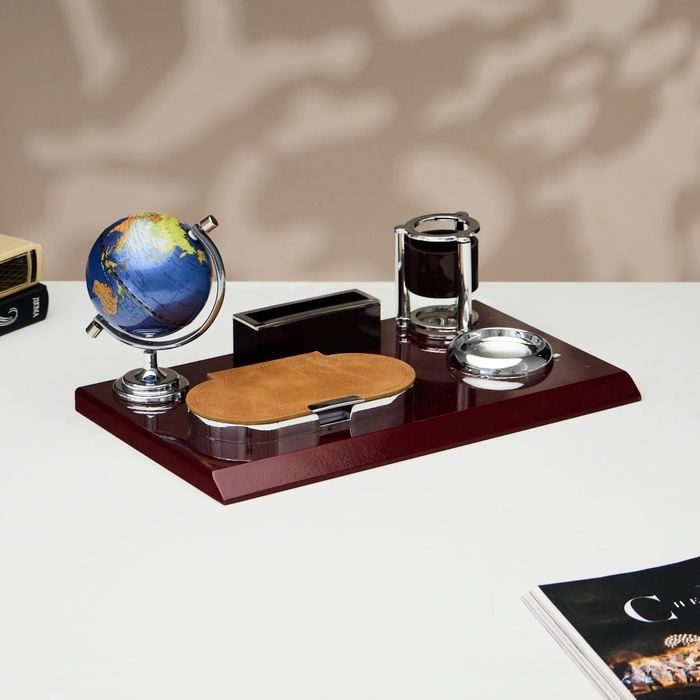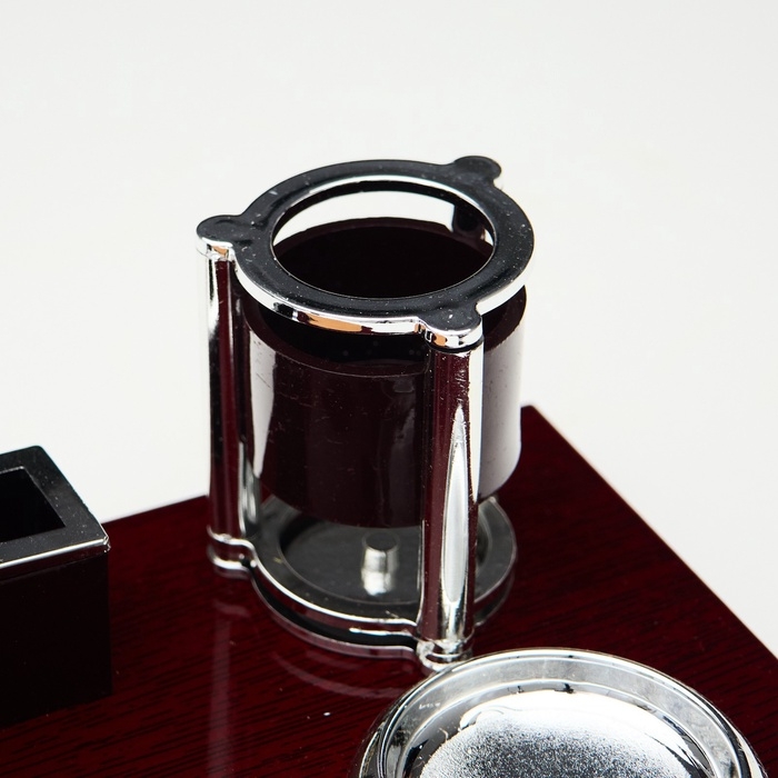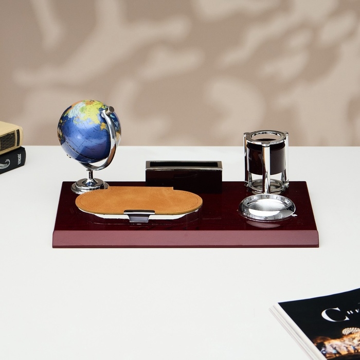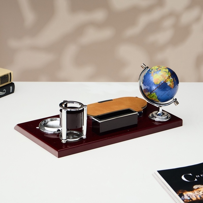 Компактный настольный набор поможет избежать хаоса на рабочем месте. Храните в нём канцелярские принадлежности или другие мелочи, чтобы правильно организовать пространство. К тому же изделие имеет минималистичный дизайн и выполнено под дерево, поэтому оно украсит собой любое место как декоративный элемент.