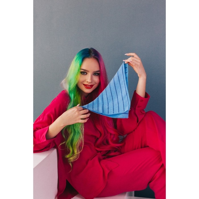 Салфетка из микрофибры идеально подходит для мытья всех видов покрытий. Она не царапает поверхности и отлично впитывает воду, как губка.