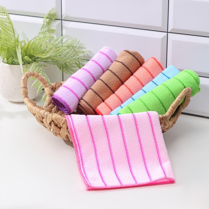 Салфетка для уборки Доляна «Полоски», микрофибра, 29×29 см, цвет МИКС