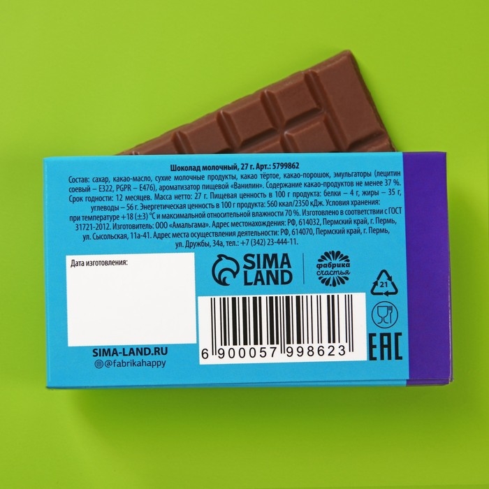 Состав: сухое цельное молоко, какое тёртое, масло какао, сухая молочная сыворотка, обезвоженный молочный жир, сахар, эмульгатор: соевый лецитин, ароматизатор, идентичный натуральному «Ванилин».