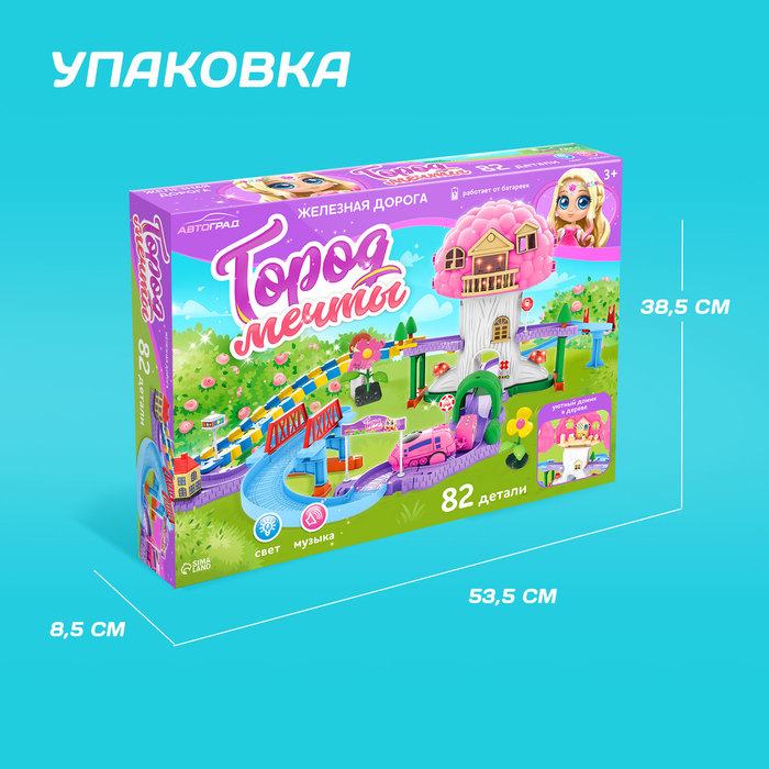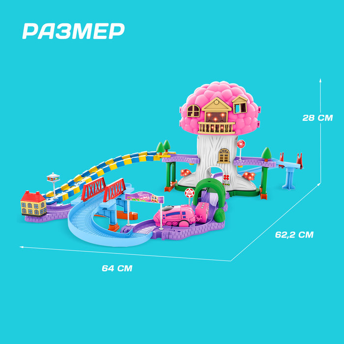 Что может быть лучше для маленькой принцессы, чем домик для кукол? Только домик на дереве и железная дорога с множеством деталей! С этим набором малышка соберет трассу с подъёмами и спусками и устроит настоящие соревнования игрушек!