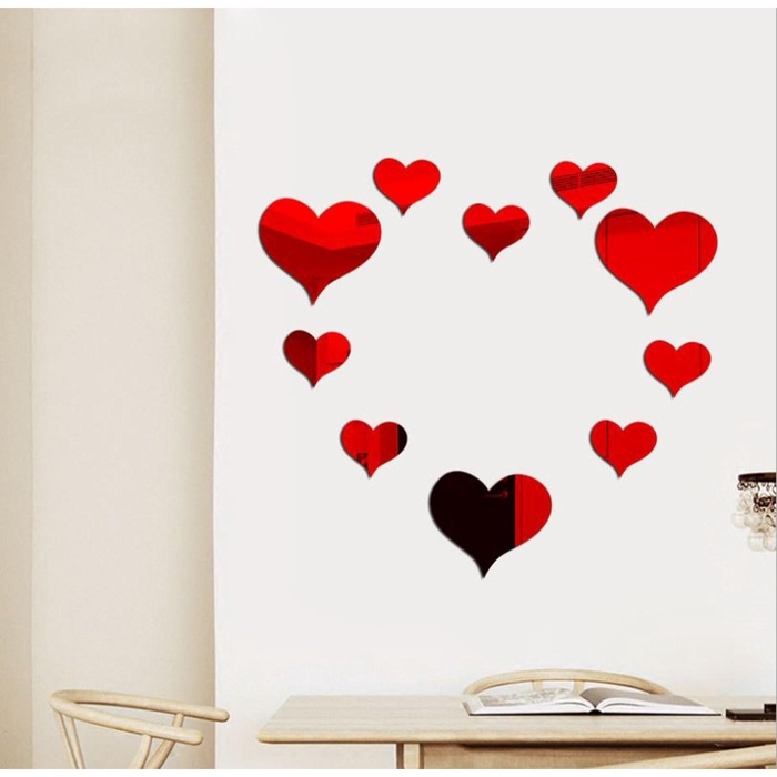 Добавьте ярких акцентов и страсти в ваш интерьер с этим стильным набором красных зеркальных наклеек в форме сердечек! Комплект включает десять элементов различных размеров (от 9 до 15 см), изготовленных из высококачественного акрила.