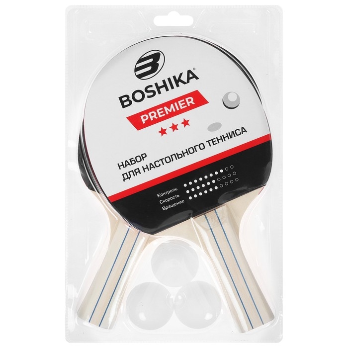 Набор для настольного тенниса BOSHIKA Premier: 2 ракетки, 3 мяча, 3 звезды