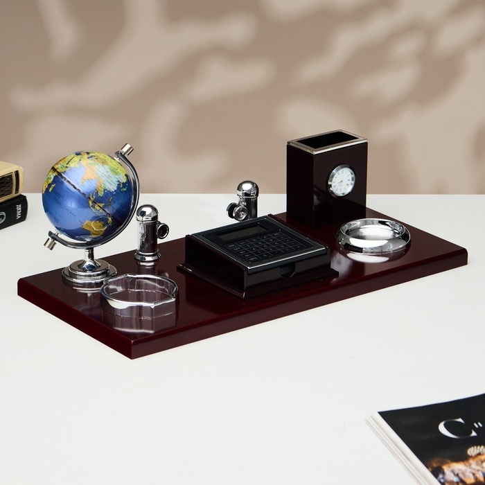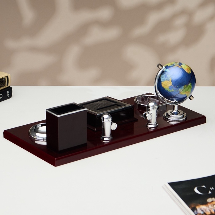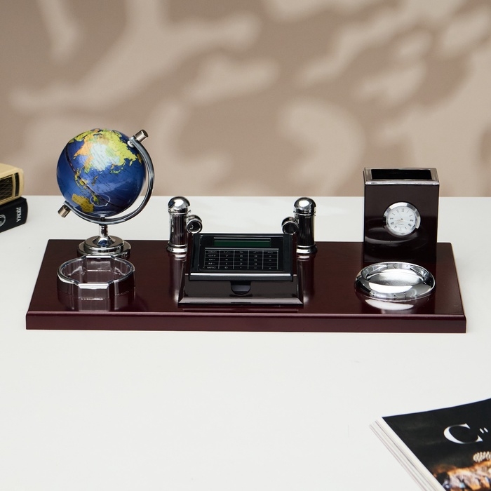 Набор настольный 7в1 (блок д/бумаг,подст.д/печати,мелочей,каранд-ца,часы,визит-ца,глобус)