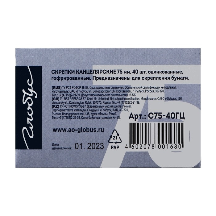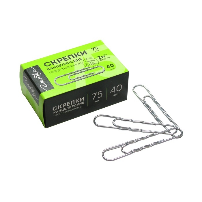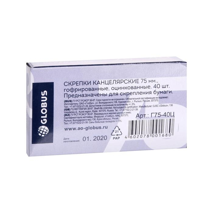 Скрепки канцелярские GLOBUS, 40 шт., 75 мм, оцинкованные, гофрированные