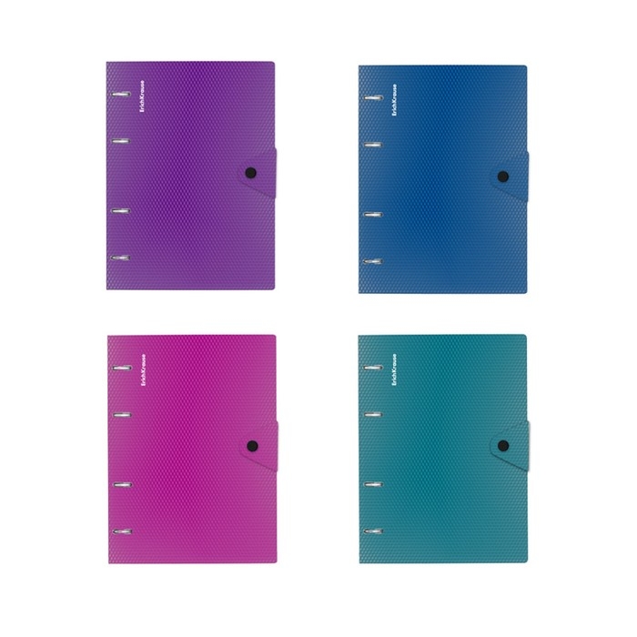 Тетрадь А4 на кольцах, 80 листов в клетку, ErichKrause Accent, пластиковая обложка, на кнопке, блок офсет 100% белизна, МИКС