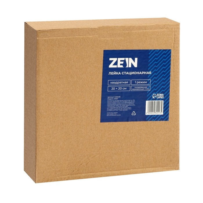 Лейка стационарная ZEIN Z020, квадратная, 20 х 20 см, 1 режим, полированная нержавеющая сталь