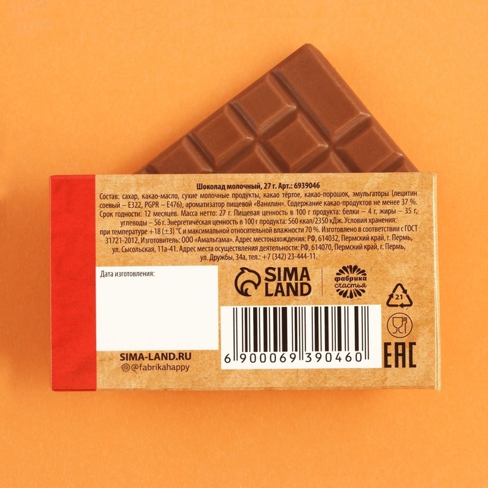 Шоколад молочный «Халява»: 27 г.