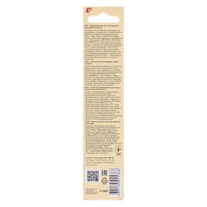 Цветные карандаши 6 цветов "Школа Творчества", трёхгранные