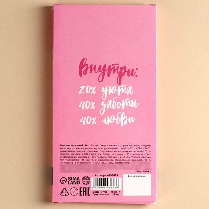 Шоколад молочный «Самой лучшей маме», 70 г.