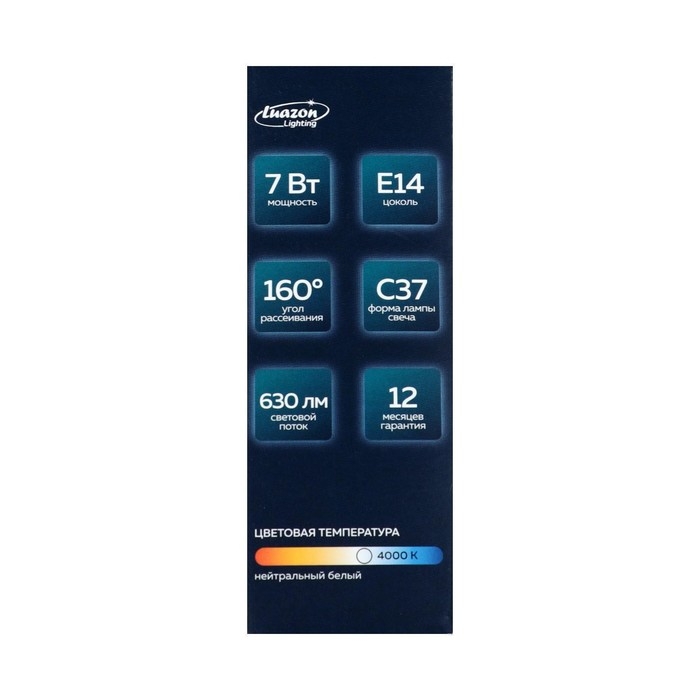 Лампа cветодиодная Luazon Lighting, C37, 7 Вт, E14, 630 Лм, 4000 К, дневной свет