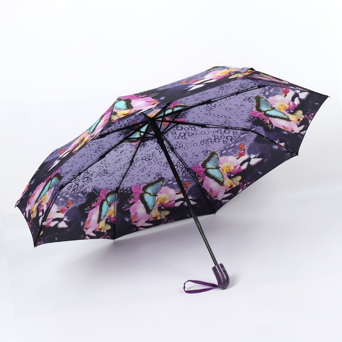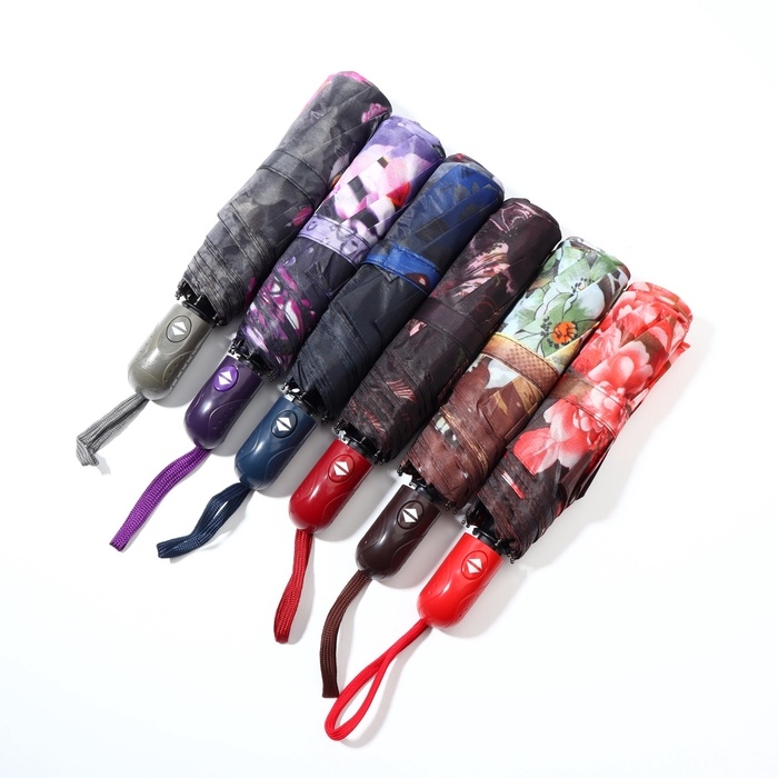 Зонт автоматический «Olivia», эпонж, 3 сложения, 8 спиц, R = 47/55 см, D = 110 см, цвет МИКС