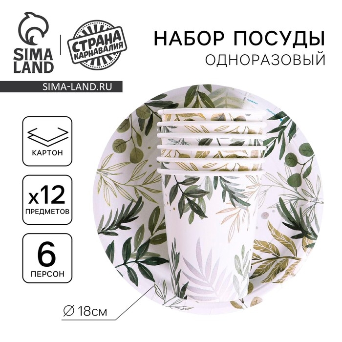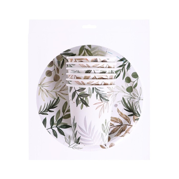 Набор бумажной посуды одноразовый Природа», 6 стаканов, 6 тарелок