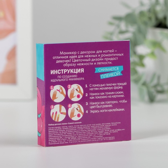 Он состоит из набора лаков для ногтей (3 шт. по 6 мл) и наклеек для ногтей и идеально подойдёт для первых бьюти-экспериментов маленькой модницы. Данный набор абсолютно безопасен для детей и благодаря гармоничной цветовой палитре лаков и входящим в набор для девочек наклейкам позволит малышке создать уникальный дизайн ногтей и попробовать себя в качестве настоящего мастера маникюра. Увлекательное времяпрепровождение и весёлые минуты творчества гарантированы!