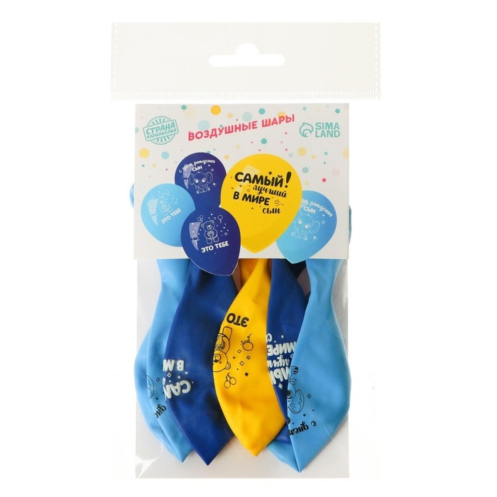 Воздушный шар латексный 12" «С днем рождения, сын», 5 шт.
