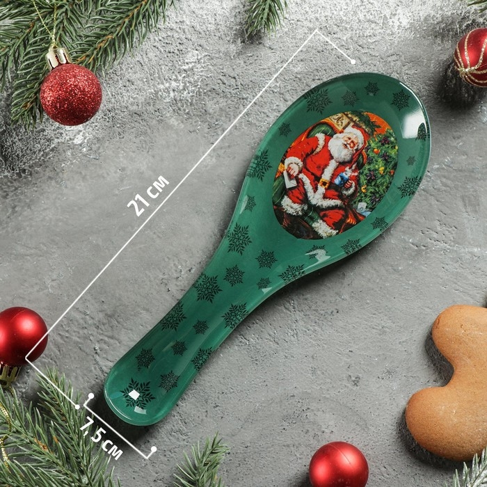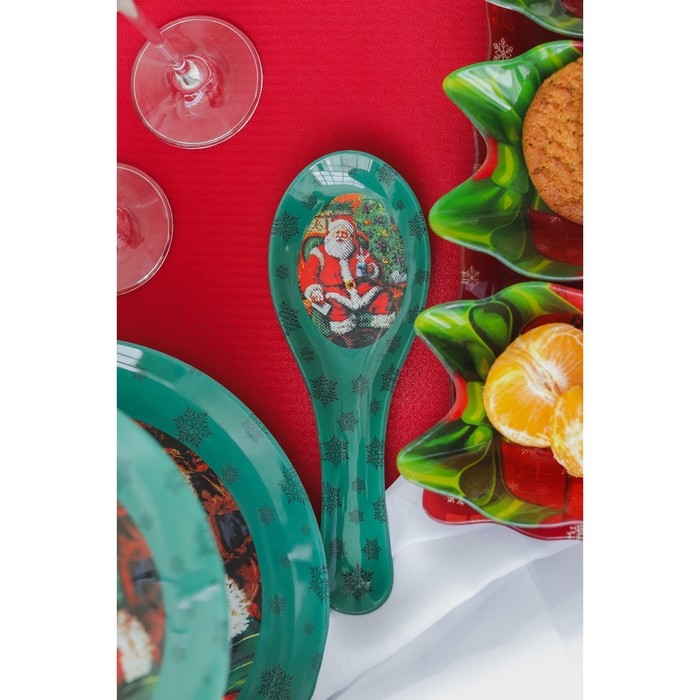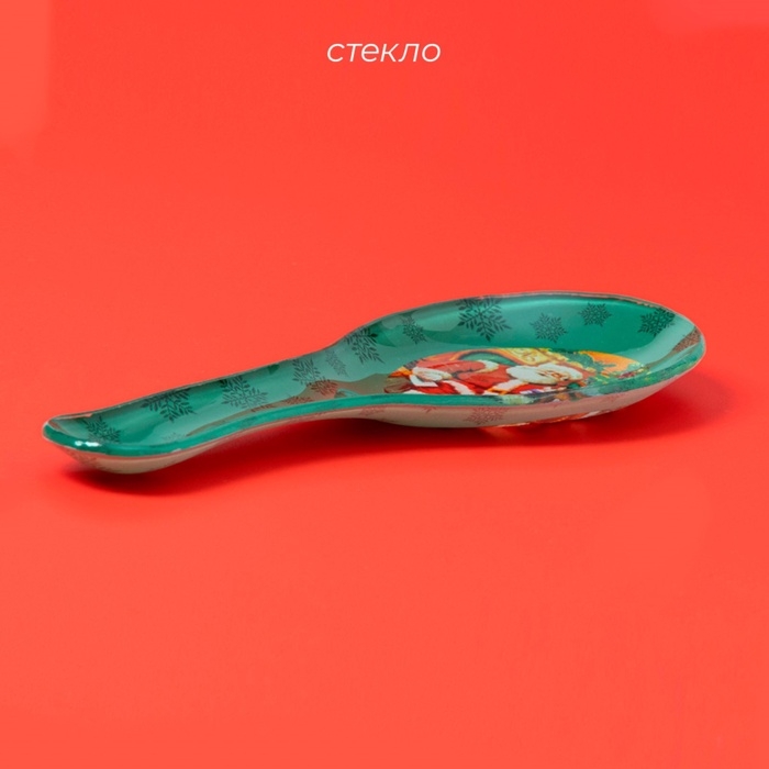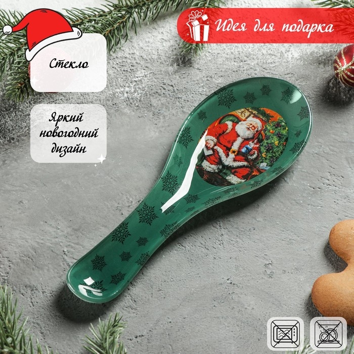 Подставка стеклянная под ложку Доляна «Счастливый Санта», 21×7,5 см, цвет зелёный