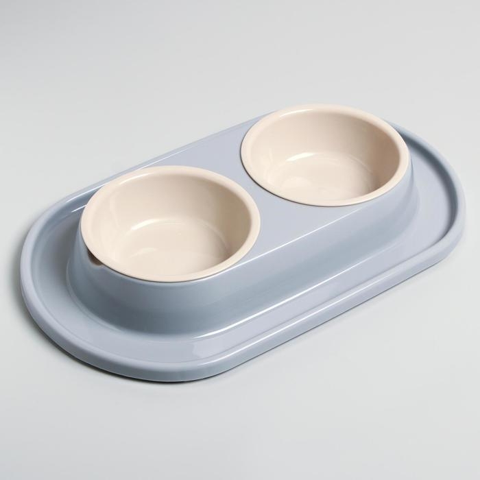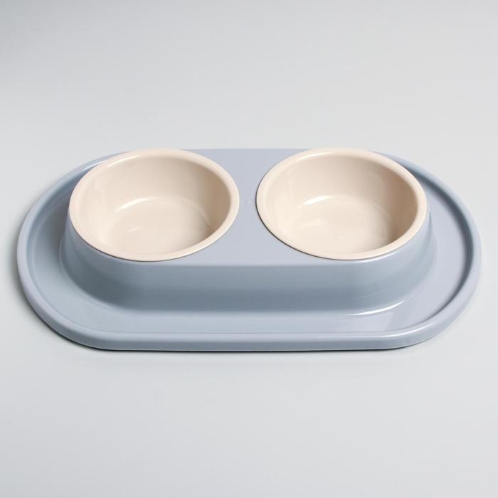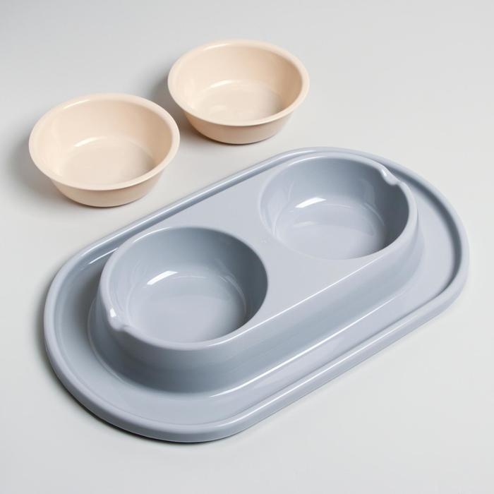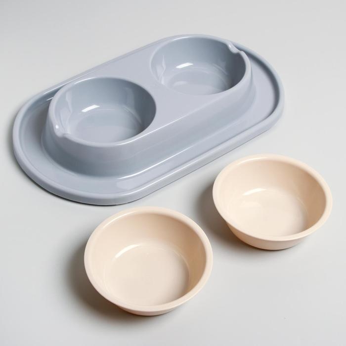 Миски с лотком "Феликс" 0,3 л, 41 x 30 x 6 см, серый лоток, белые миски