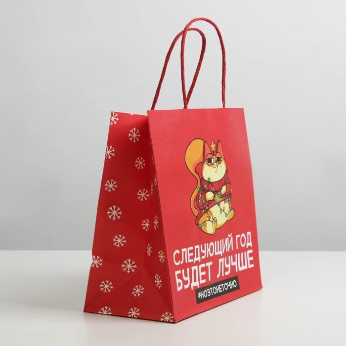 Пакет подарочный новогодний «Следующий год будет лучше», 22 х 22 х 11 см
