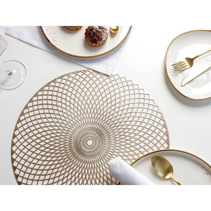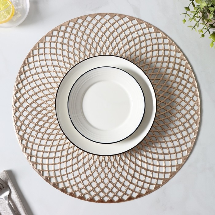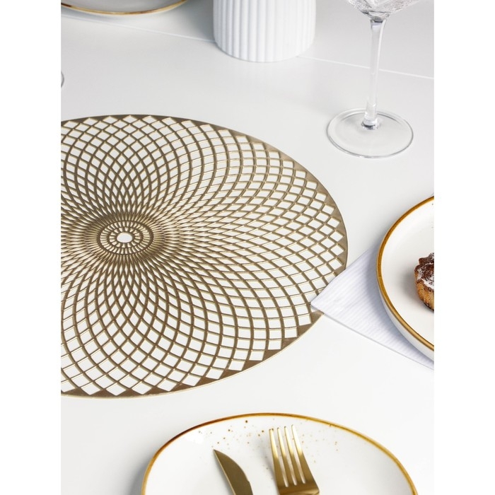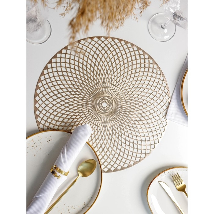 Набор салфеток сервировочных на стол Доляна «Вира», 4 шт, d=38 см, цвет золотой