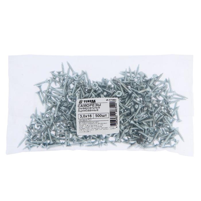 Саморезы универсальные ТУНДРА krep 3.0x16 мм, цинк, 500 шт.