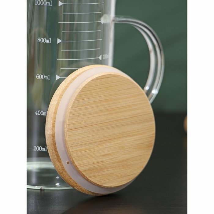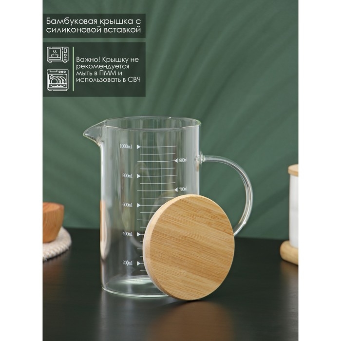 Кувшин мерный BellaTenero «Эко», 1 л, стекло, с бамбуковой крышкой, прозрачный
