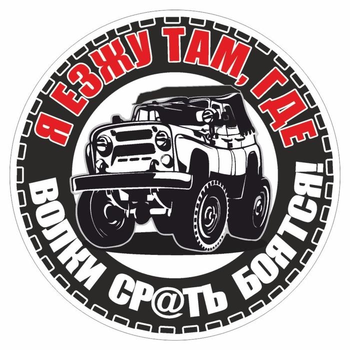 Наклейка "Внедорожник. Я езжу там, где волки ср@ть боятся", круг, 15 х 15 см, 1 шт