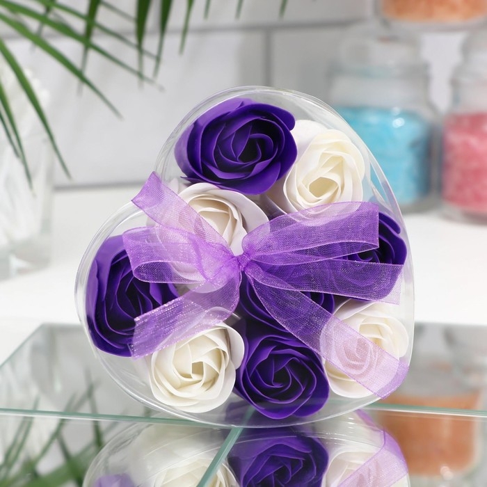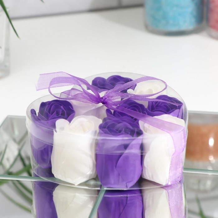 Мыльные розочки, фиолетовые и белые, набор 9 шт.