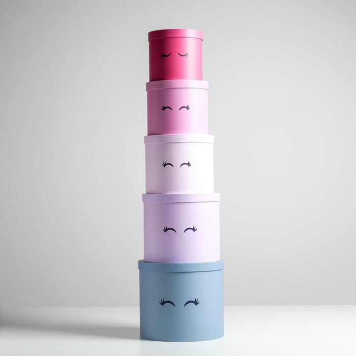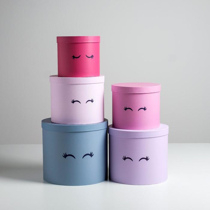 Набор шляпных коробок для цветов 5 в 1, упаковка подарочная, «Глазки», 14 х 13 см - 22 х 19,5 см