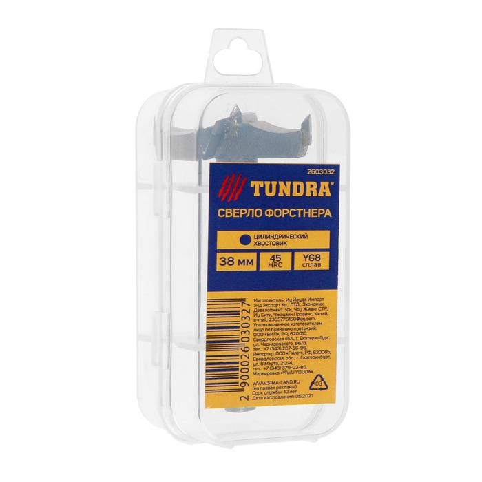 Сверло Форстнера ТУНДРА, твердосплавные пластины, цилиндрический хвостовик, 38 мм