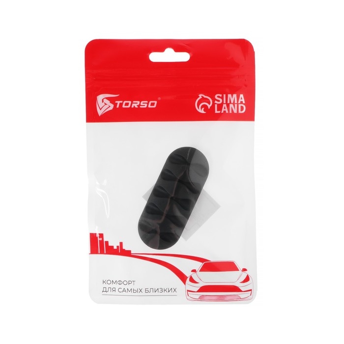 Держатель для проводов в машину TORSO, самоклеящийся, 3 деления, 5×2см, черный , пластик