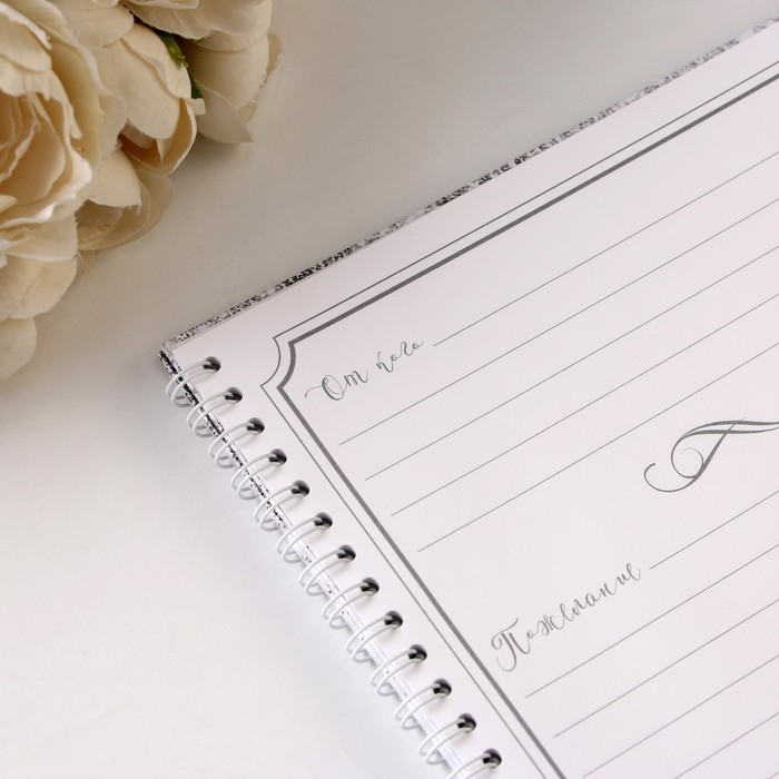Книга пожеланий «Белая с блестками» на пружине, 21,7 х 21 см.