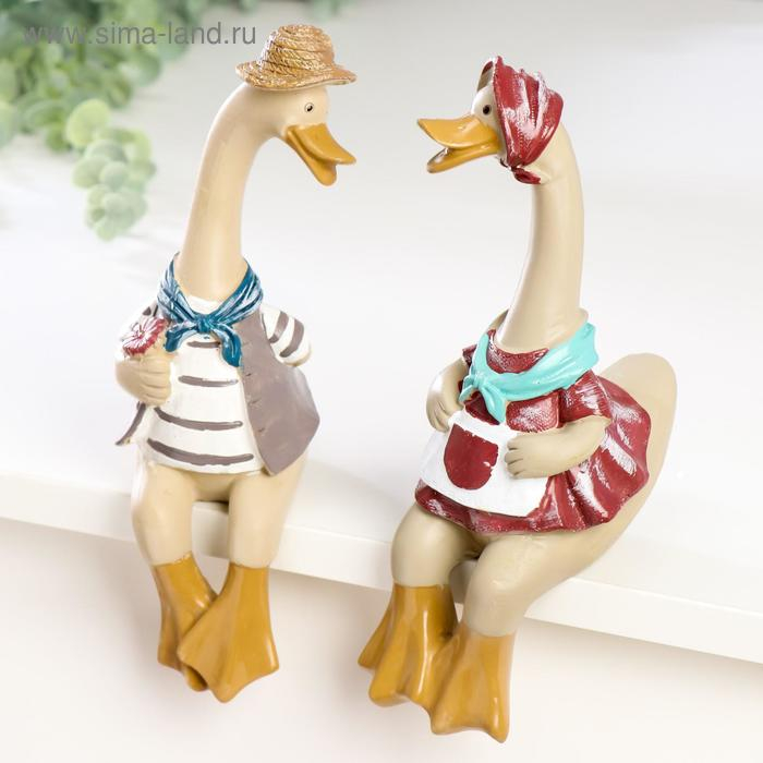 Сувенир полистоун "Гусь с гусыней" набор 2 шт 23х10х6,5 см