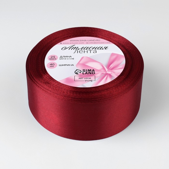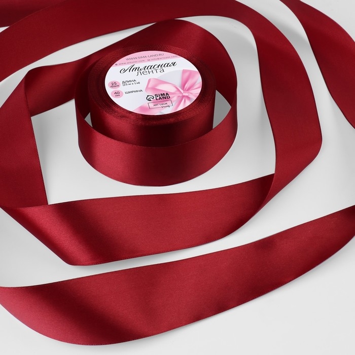 Лента атласная, 40 мм × 23 ± 1 м, цвет бордовый №48