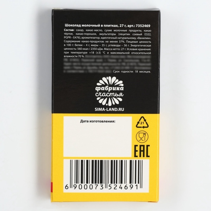 Шоколад молочный «Халява»: 27 г.