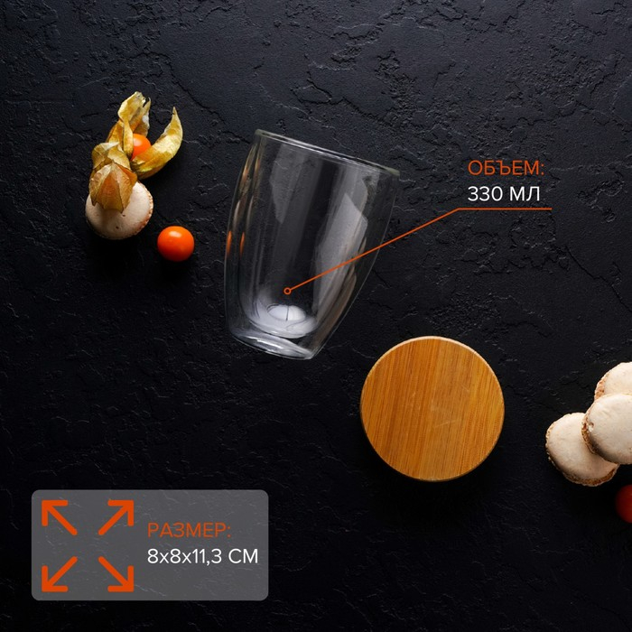 Стакан стеклянный с двойными стенками «Эко», 330 мл, цвет прозрачный