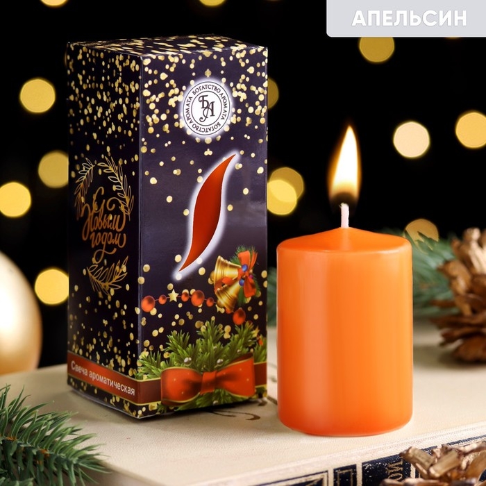 Свеча ароматическая новогодняя "Волшебства в Новом году", апельсин, 4×6 см, в коробке