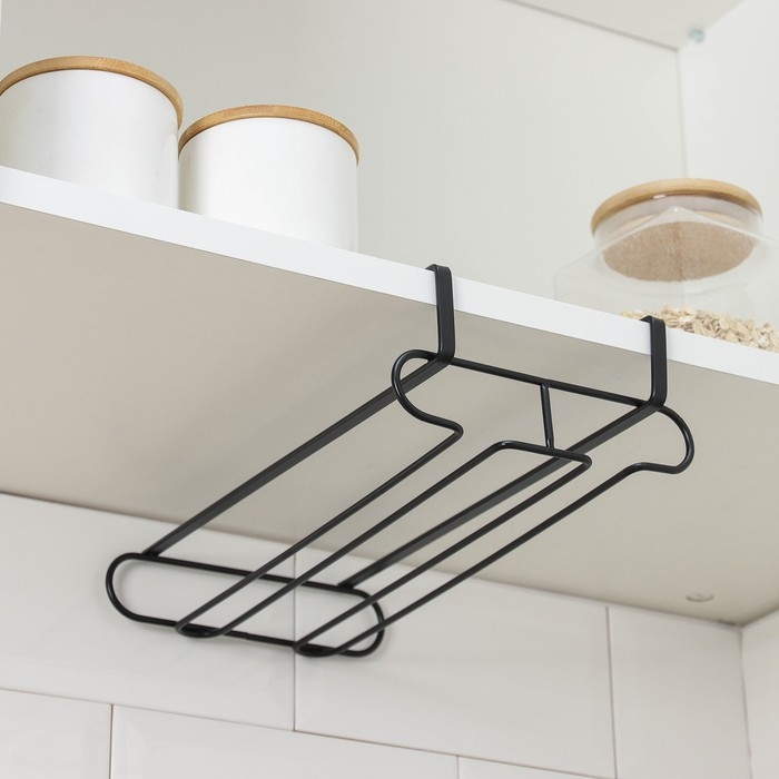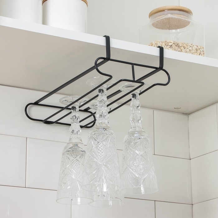 Держатель для бокалов подвесной Доляна, 28×16×7,5 см, чёрный