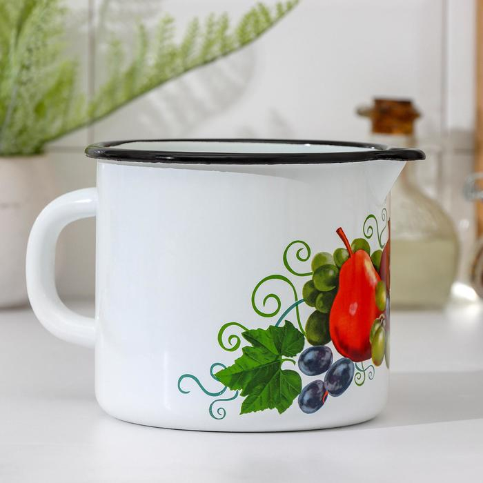Кружка с носиком, 1 л, деколь, деколь МИКС, цвет белый