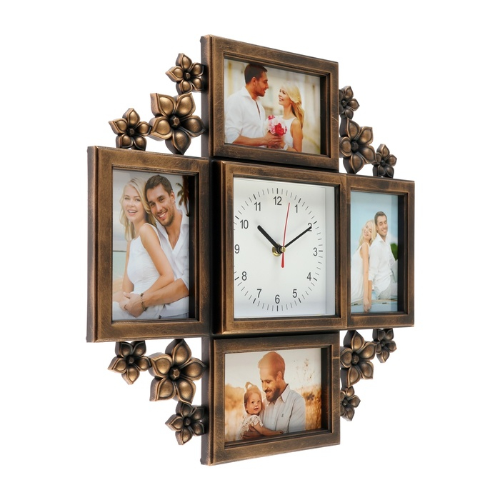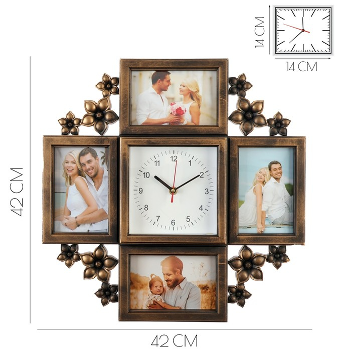 Часы настенные интерьерные, фоторамка - коллаж "Цветы", бесшумные, 42 х 42 см, 14 х 14 см